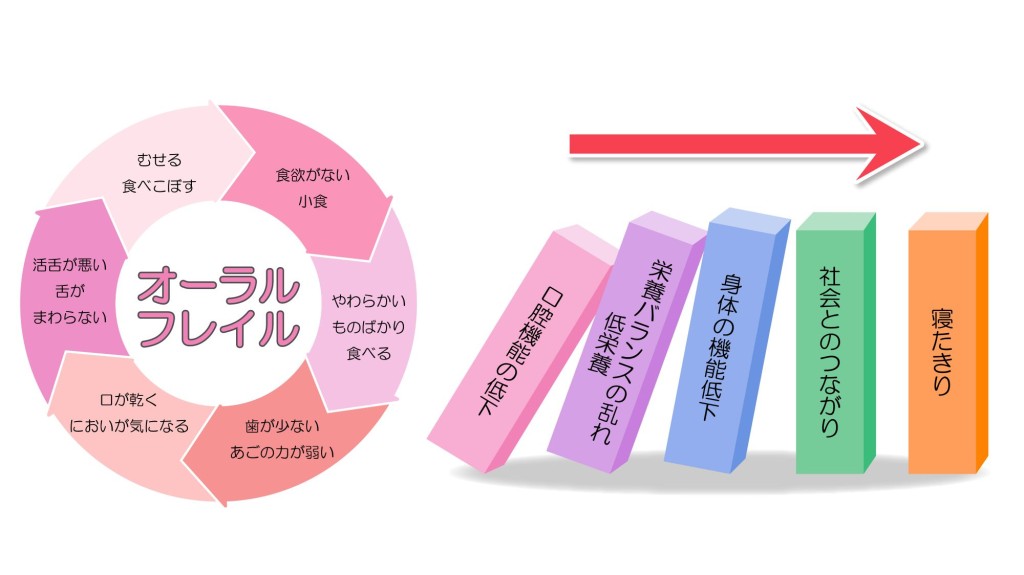 お口の機能が衰えると、負の連鎖が起こりやすくなります。